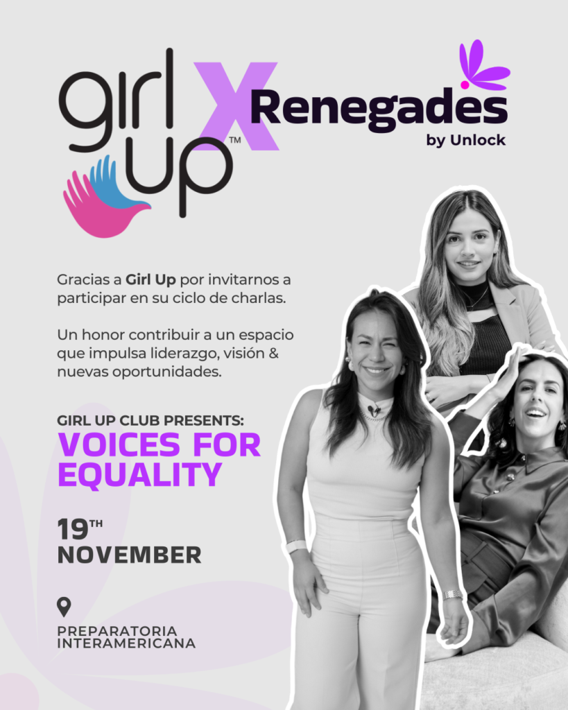 En noviembre, tuvimos una edición especial de Renegades en colaboración con Girl Up y el Colegio Americano de Puebla, donde compartimos una conversación poderosa sobre equidad de género con estudiantes de preparatoria.